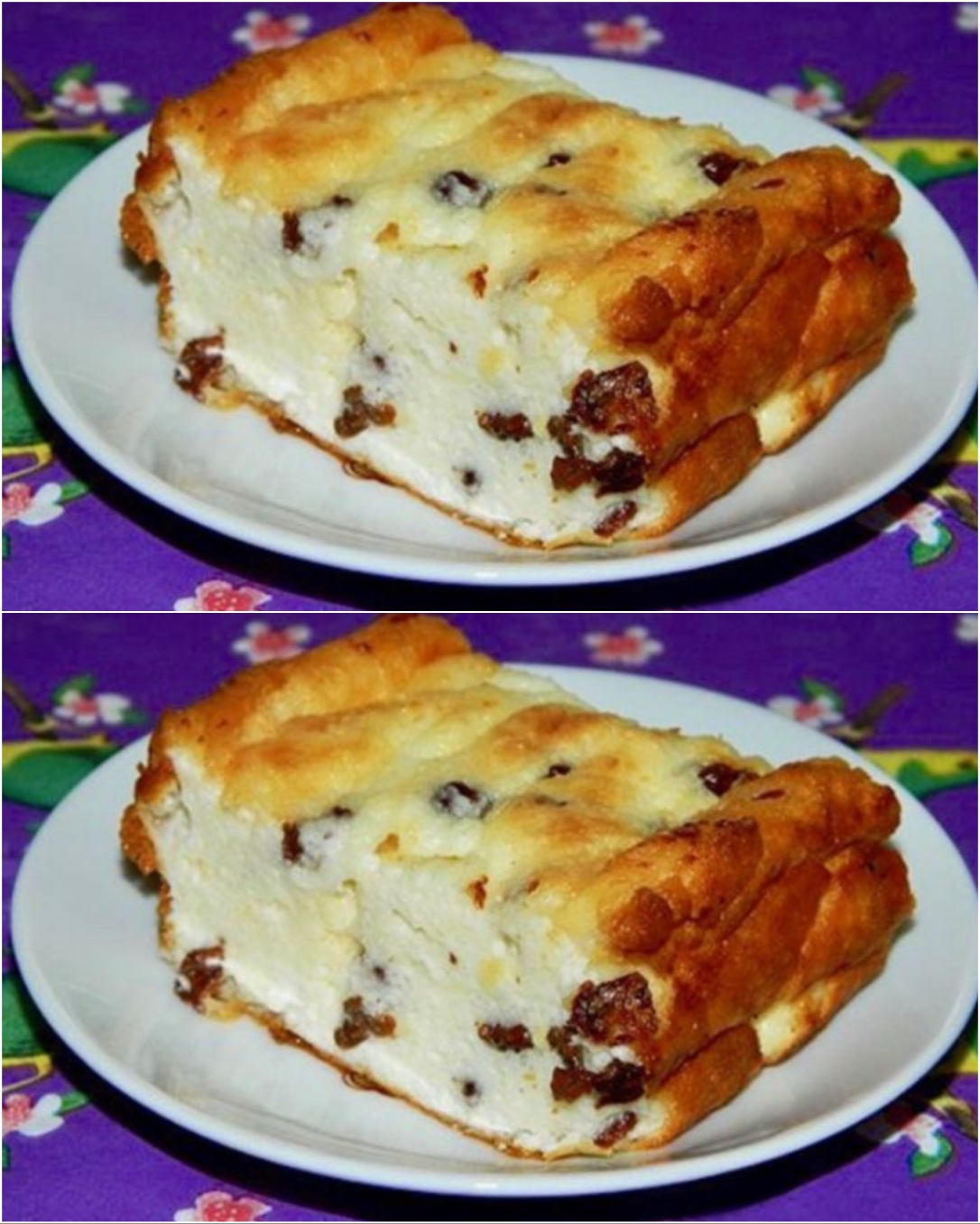 Tartă fără făină și fără zahăr, din brânză și stafide