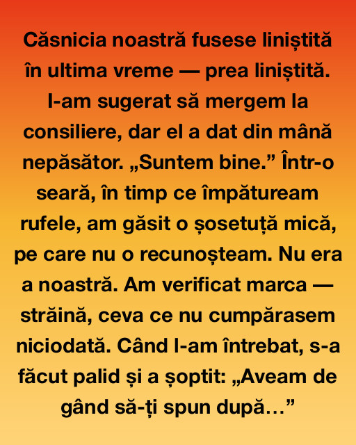 Căsnicia noastră fusese liniștită în ultima vremeȘosetuța Străină