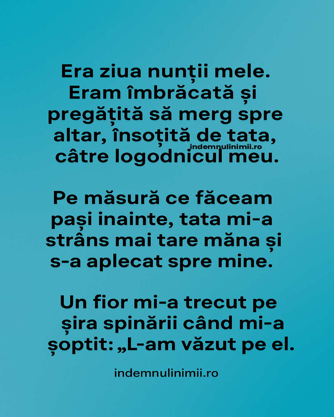 Tatăl meu mi-a șoptit un avertisment înainte să mă conducă pe culoar