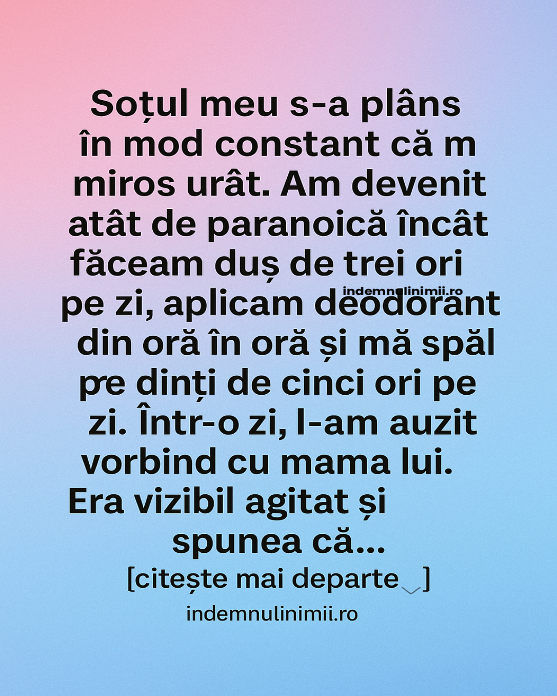Soțul meu se plângea mereu că trupul meu miroase urât
