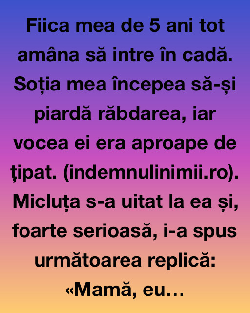 Fiica mea de 5 ani tot amâna să intre în cadă