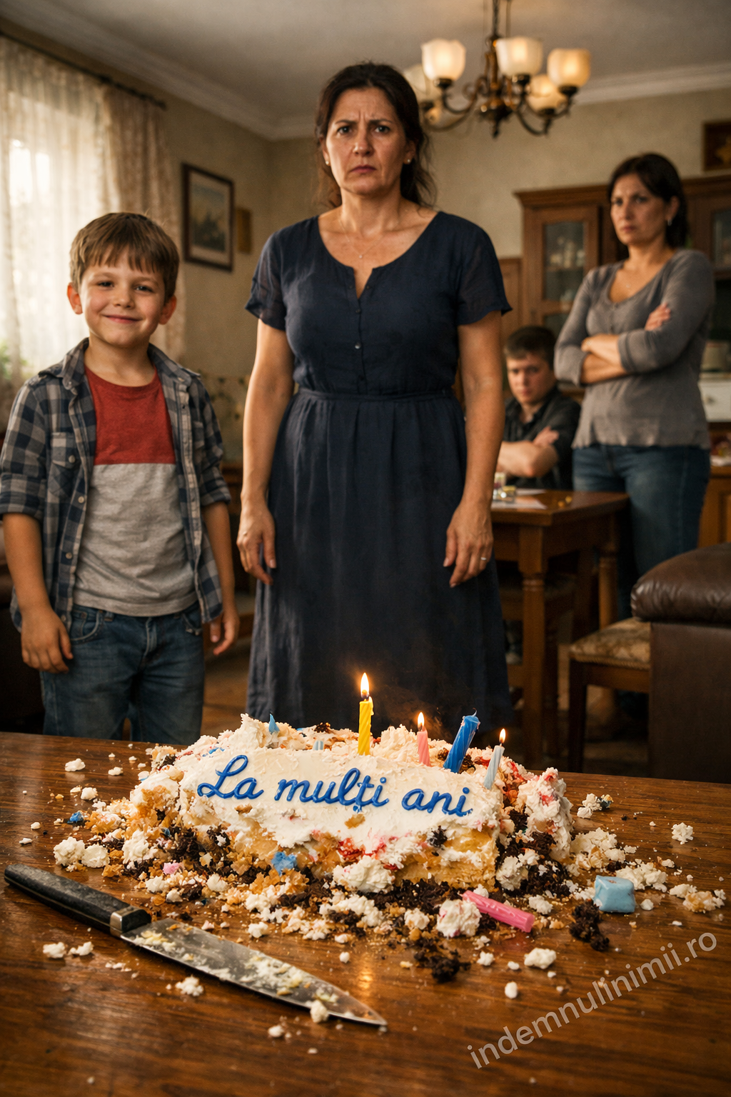 Liniștea s-a adâncit. Câteva rude mai apropiate s-au ridicat în picioare, uitându-se consternate la Andrei și Bianca. Cineva a scăpat un pahar pe jos. Rareș, inocent, se juca pe sub masă, neatins de furtuna care se declanșase în jurul lui.
